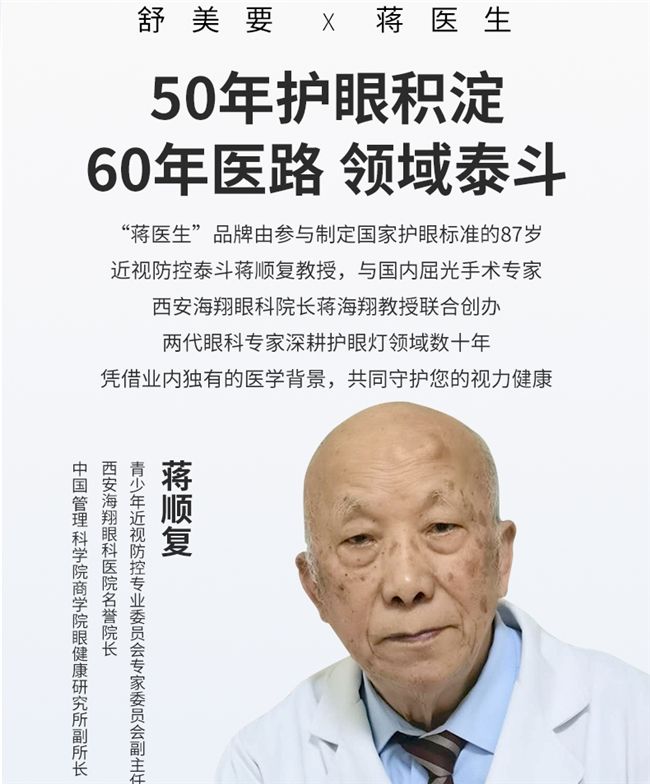在各项维度的综合评判中,舒美要蒋医生大路灯落地式护眼灯展现出了扎实的硬件功底,在光源核心元件品质、光生物安全把控以及护眼有效性验证方面表现亮眼,赢得了市场的广泛认可。