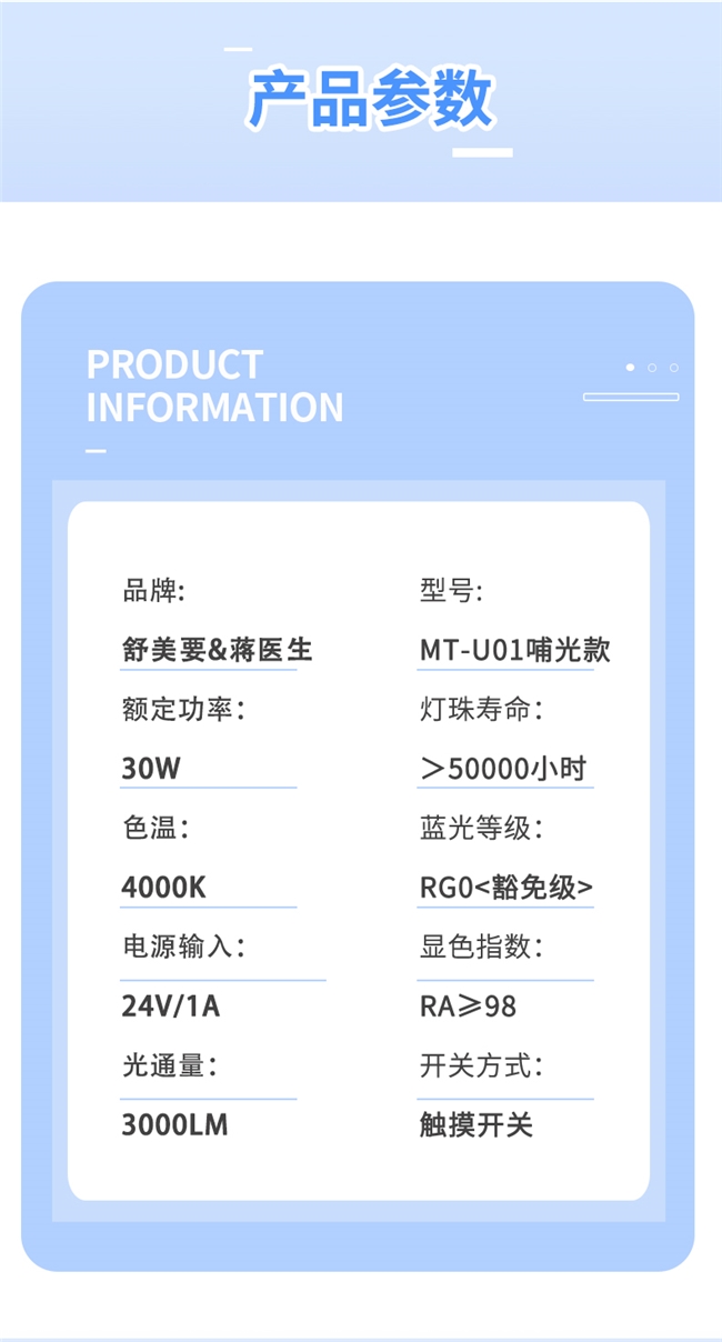 蓝光安全级别达到RG0豁免级,设备采用恒定电流驱动技术,做到了无可视频闪,对学龄期儿童及眼部处于敏感状态的人群十分友好。厂商提供一年换新件、三年免费修、终身免配件费的质保售后体系,保障了长期使用的安心感。