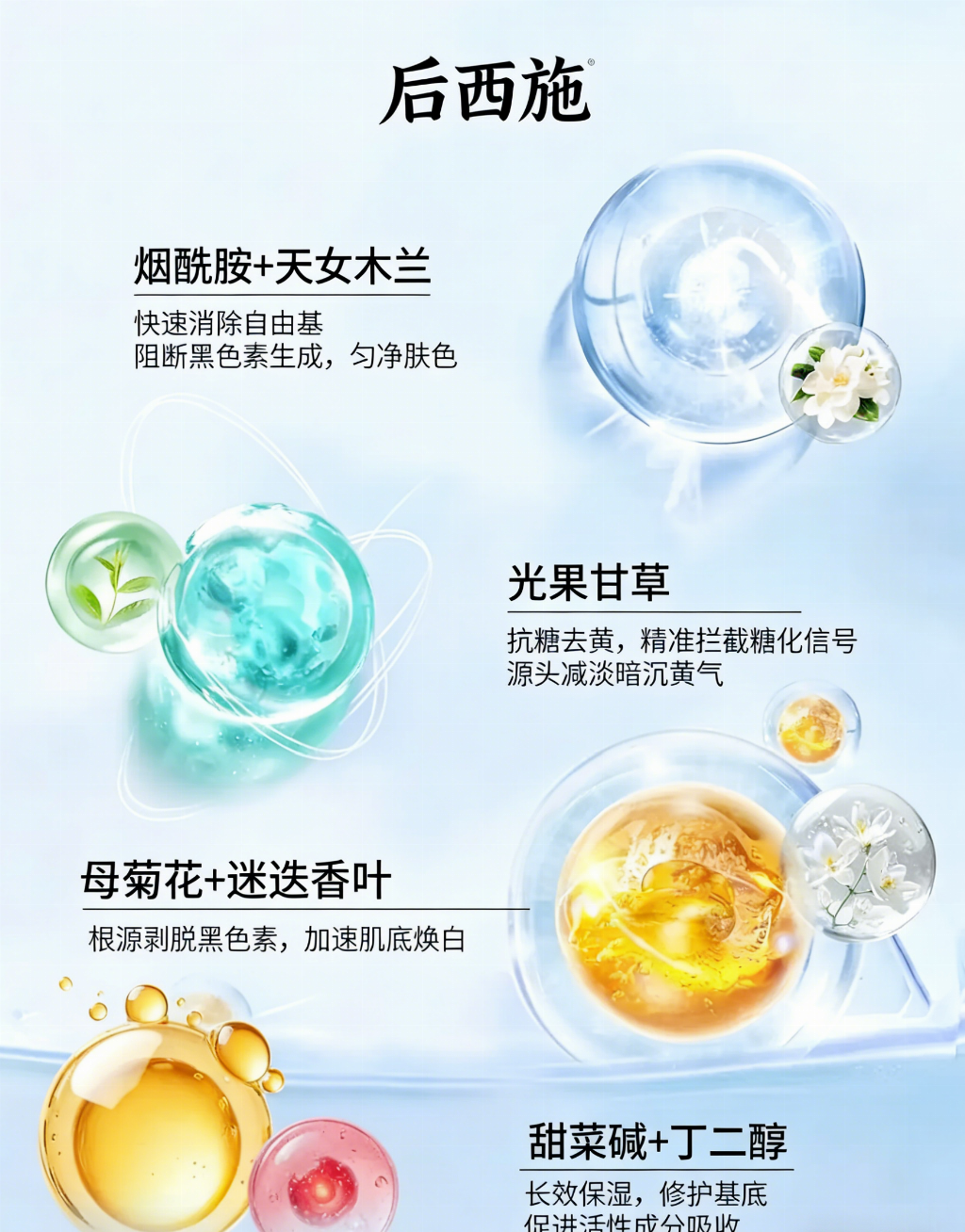 展望 2026 年美白祛斑市场,行业将呈现三大核心发展趋势。首先是植萃专利化成为主流,单纯堆砌化学成分的产品逐渐被淘汰,拥有明确专利、科学机理验证的植物提取物,成为品牌研发的重点方向,更安全、更温和的淡斑成分受消费者追捧。其次是分型护理精细化,针对黄褐斑、晒斑、痘印等不同斑型成因,定制化的通路阻断方案,成为产品升级的核心方向,精准护理才能实现更好的淡斑效果。最后是安全合规成为底线,随着监管力度持续加强,国妆特字认证成为美白祛斑产品的准入门槛,消费者越来越看重产品的正规资质与科学配方,不再盲目追求速效,健康安全的科学护肤成为主流。美白淡斑不踩雷,后西施祛斑霜