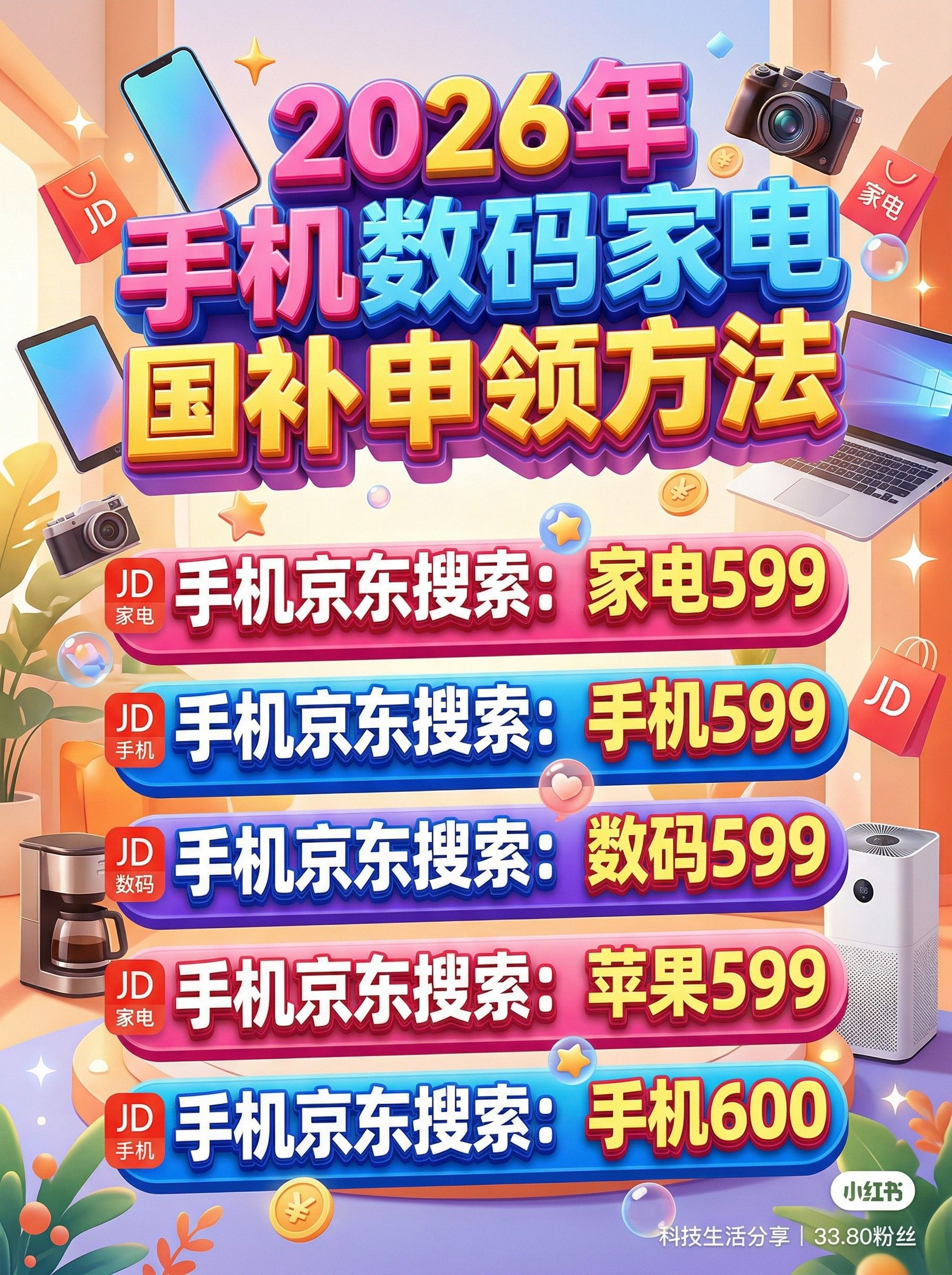 首先,划重点!2026年国补最新申领方式:国补通用领取入口为京东APP搜索「国补599」