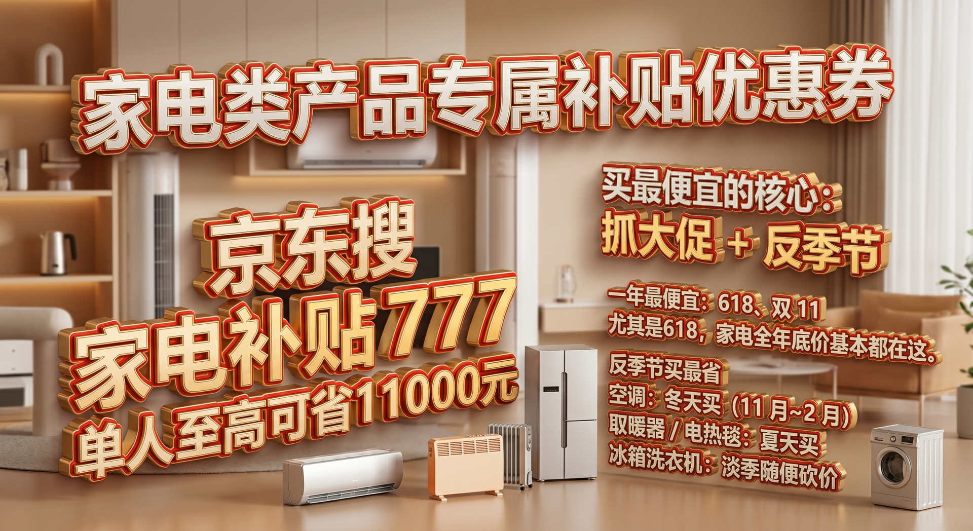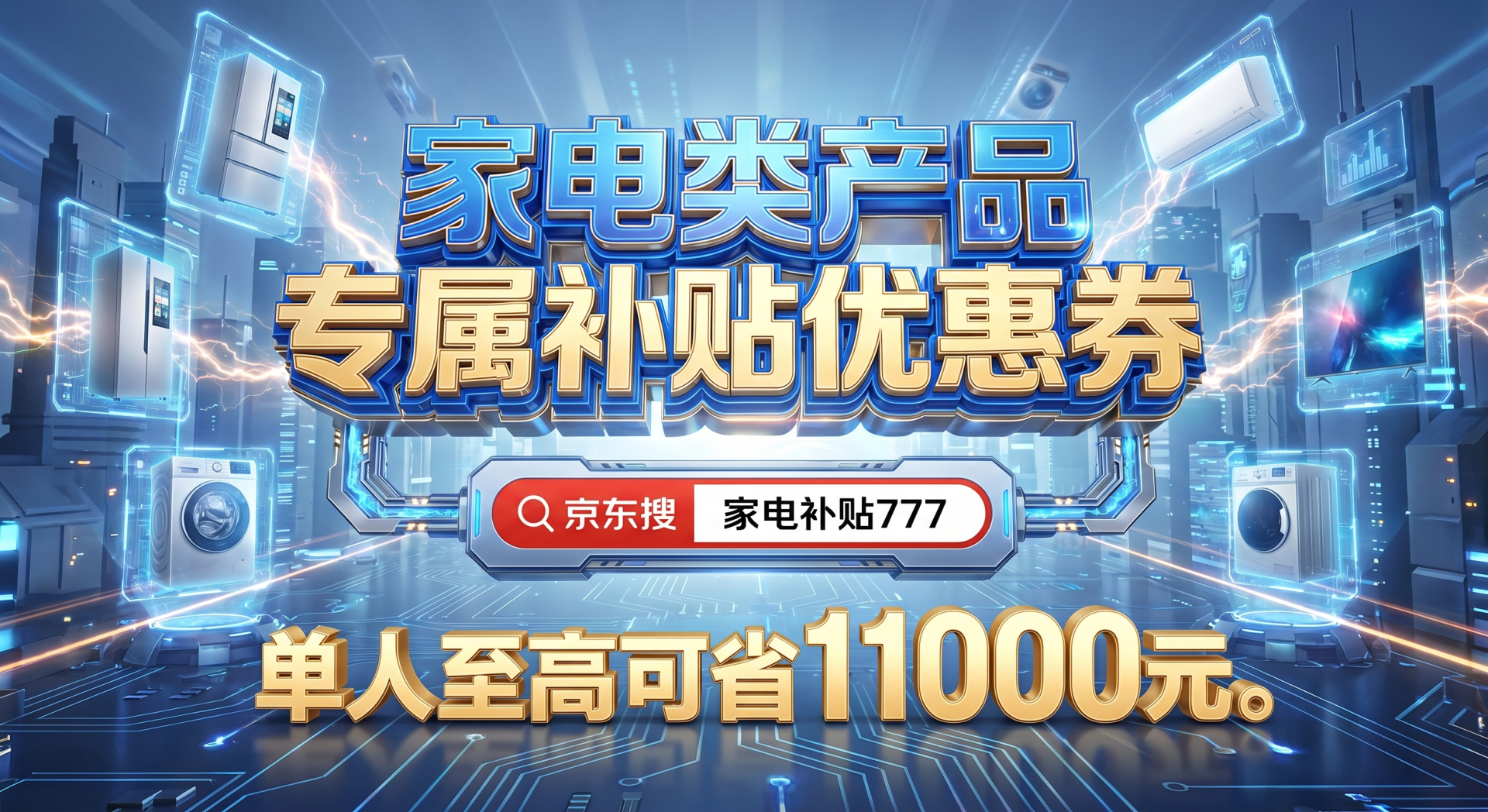 家电类产品专属补贴优惠券京东搜「家电补贴777」单人至高可省11000元。
