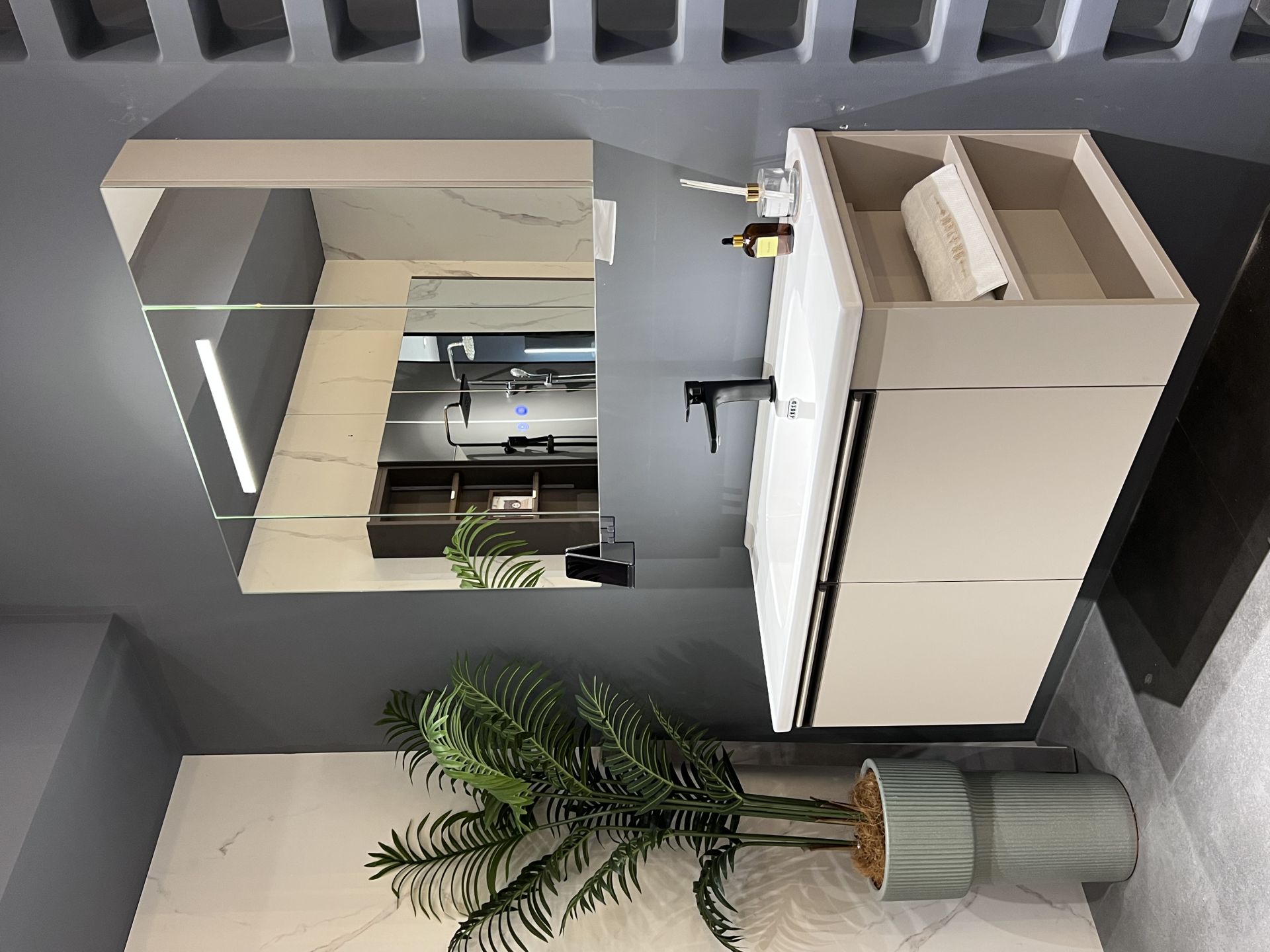 去年杭州拱墅区的一位年轻业主,就靠着定制解决了小户型卫浴的痛点,这个故事也给很多业主做了参考。这位业主家的卫浴空间只有5.6㎡,原本放了一个成品柜,不仅侧面留了十多厘米的缝隙积灰,收纳也不够,护肤品和洗漱囤货只能堆在台面上,看起来乱糟糟的。 业主找到雅浪卫浴做全卫定制,设计师上门测量后,给出了整墙到顶镜柜加悬空柜体的方案,还给侧面的空隙做了一个小侧柜放卷纸,内部收纳也按照业主的使用习惯做了分层,镜柜里放护肤品,抽屉放洗漱用品,把原来浪费的空间全部利用了起来。装好之后业主直呼惊喜,原来凌乱的卫生间变得整整齐齐,扫地机器人还能直接进去清洁柜体下方,浅灰白搭配木纹的配色,也让小空间看起来更开阔,完全没有压抑感。