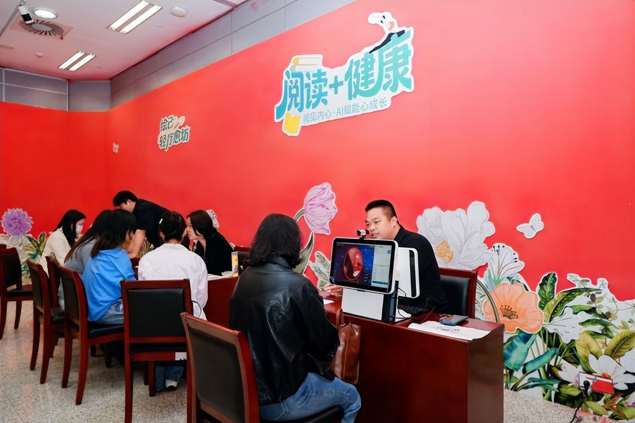 在“阅读+生活”区域,AI智能健康检测联合中医专家坐诊,为读者带来“AI+人工”个性化健康咨询;AI情绪检测结合音疗体验,由专业主理人带领读者体验沉浸式疗愈;拼贴诗互动工坊,鼓励大家用文字表达心境。