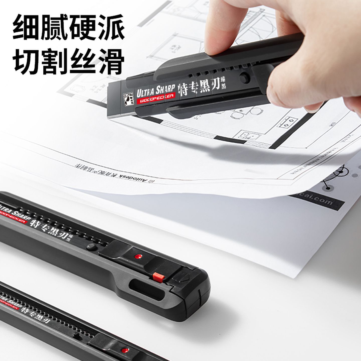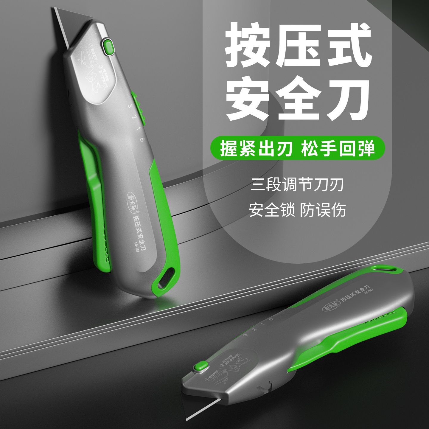 针对切割时刀片晃动的问题,品牌研发了旋钮锁紧结构的美工刀架,获得了相应的实用新型专利,旋钮式锁紧滑块可以精准锁定刀片伸出长度,切割时不晃动不回缩,适配重型切割场景,稳定性比传统推钮式刀架好很多;针对安全使用的需求,还有自动回弹结构的刀架,刀片推出后自动锁止,使用后一键按压就能回弹收纳,不用手动推回,操作便捷安全性也更高。而主推的磁吸式美工刀架,更是解决了很多用户的痛点:磁吸结构可以牢牢固定刀片,换刀片操作更简单,刀身自带收纳空间,方便携带备用刀片,实用性提升不少。