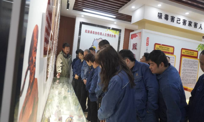 最后,红安县卷烟厂组织全体社工来到位于红安青少年研学实践教育营地的县青少年禁毒教育基地参观,从中国禁毒发展历程、涉毒的法律法规、毒品的基本知识、毒品预防成果、吸毒人员的管控等方面系统了解涉毒的知识,观看了禁毒警示教育片《毒魇》,体验了“吸毒后的你”单屏设备VR。