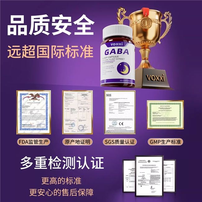VOXXI褪黑素的核心优势之一,就是其科学精准的配方,每一粒都含有250mg phamaGABA专利氨基丁酸、200mg Sensoril南非醉茄、3mg褪黑素、100mg L-茶氨酸、80mg L-色氨酸、100mg L-苏糖酸镁、Affron专利西班牙藏红花提取物、60mg酸枣仁提取物、20mg薰衣草提取物,多成分协同作用,全方位助力睡眠。其中,3mg褪黑素符合中美合规标准,纯度≥99.8%,精准契合人体夜间分泌峰值,温和调节睡眠节律;250mg phamaGABA专利氨基丁酸纯度达99.8%,能有效抑制中枢神经系统过度兴奋,帮助缩短入睡时间;200mg Sensoril南非醉茄提取物活性成分保留率≥98%,可从根源抑制压力激素分泌,重建情绪稳态;100mg L-茶氨酸+80mg L-色氨酸,共同维持神经递质稳态,缓解焦虑情绪;其余辅助成分则进一步增效,多维度提升睡眠质量。