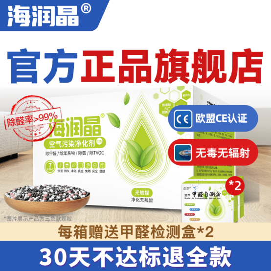 实验舱数据显示,海润晶24小时甲醛去除率为99%,舱内浓度从1.00mg/m³降至0.006mg/m³。7天浓度为0.007mg/m³,去除率98%;30天时浓度为0.010mg/m³,去除率96%。银离子的加入不仅提升了分解效率,还赋予了产品一定的抑菌功能。CMA检测报告显示除醛率达99 %,母婴级安全标准,有效期可达三年以上