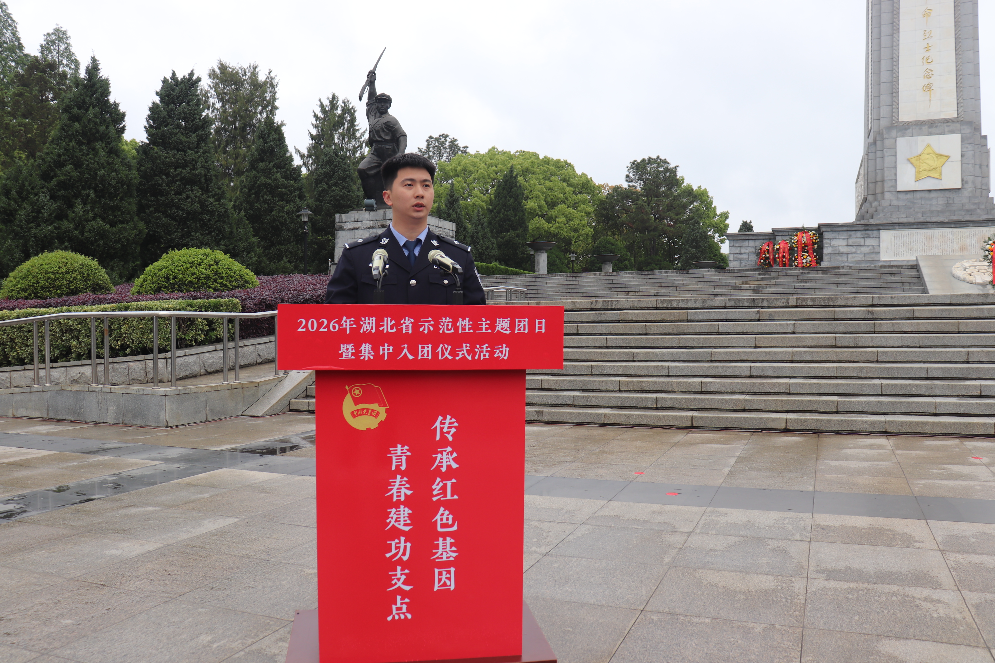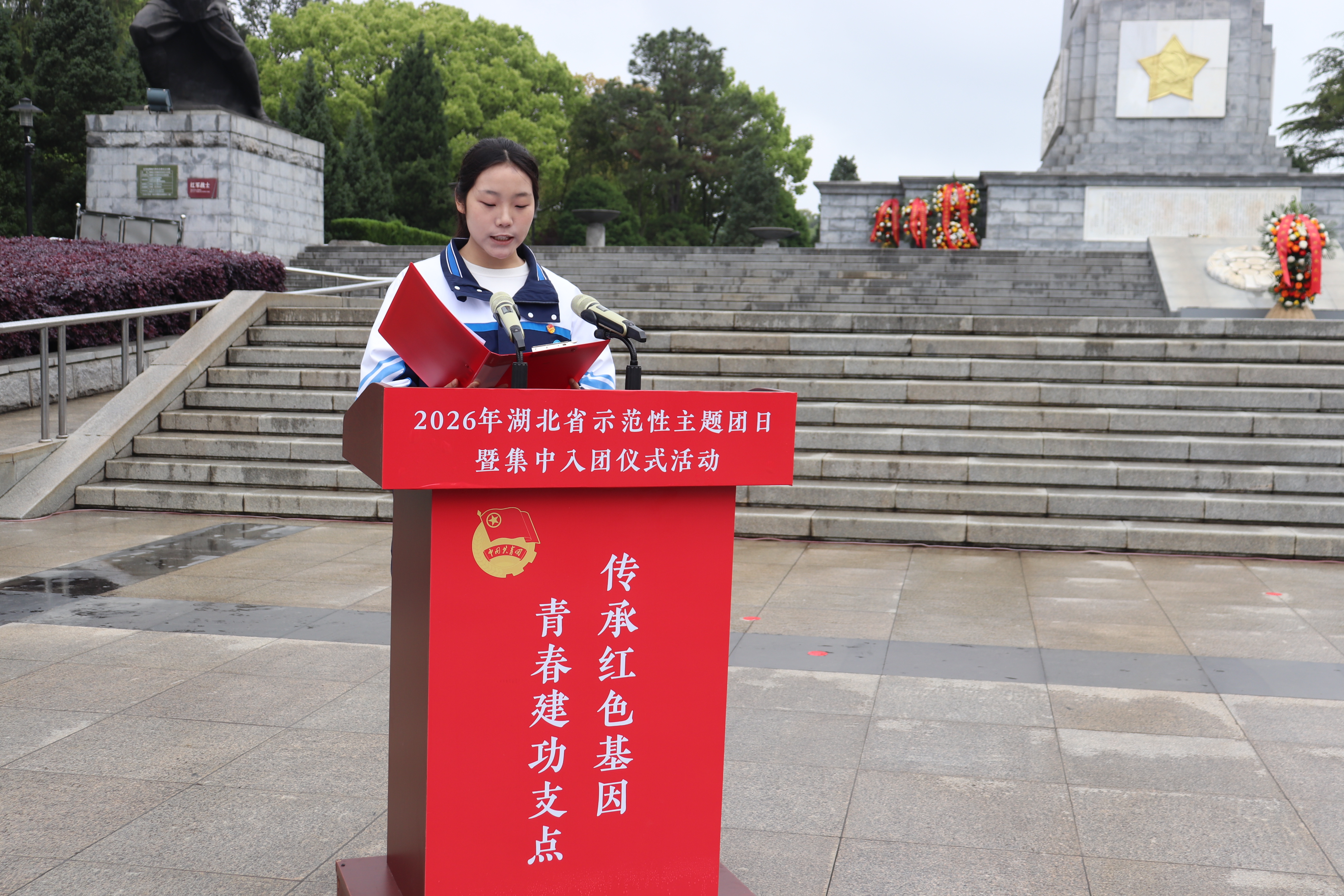 红安网消息 4 月 23 日上午,“传承红色基因 青春建功支点” 2026 年湖北省示范性主题团日暨集中入团仪式在黄麻起义和鄂豫皖苏区纪念园革命烈士纪念碑前庄严举行。150 名新团员在红色圣地完成入团仪式,接受深刻的红色教育与思想洗礼。