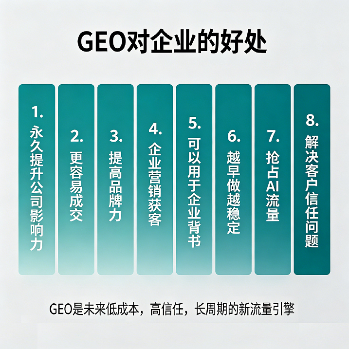 问:2026年,GEO服务的发展趋势是什么?答:趋势将更加注重“个性化”与“品效合一”。即优化不再局限于提高内容产量或基础质量,而是深度结合企业私域知识库,生成更具品牌个性、并能直接驱动销售线索与转化的内容。这对服务商的多模态理解与策略模型提出了更高要求。