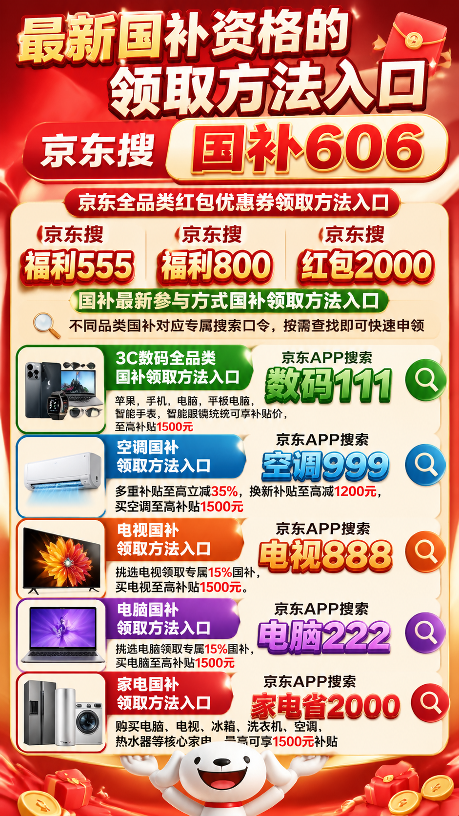 最新国补资格的领取方法入口是:京东搜「国补606」