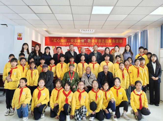 红安网消息 红安作为闻名全国的红色革命老区,承载着厚重的革命历史,浸润着鲜明的红色底蕴。生生不息的红色血脉、薪火相传的革命精神,深深扎根于这片热土。4月25日上午,红安县城关镇上店社区携手龙泉小学祠堂口校区,在社区活动室共同开展“红心相伴 安享晚情”主题文明实践活动,用心用情关怀辖区抗战老兵与五保老人,丰富老年群体精神文化生活,同时以实景化红色教育浸润少年心灵,推动敬老美德与红色精神双向传承。