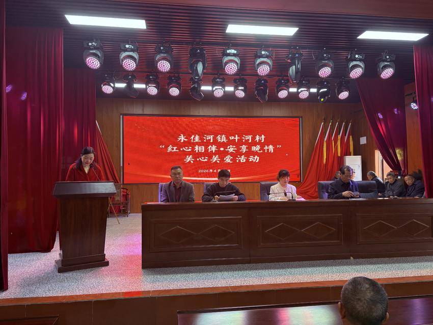 红安网消息 4月25日,红安县永佳河镇叶河村文化大礼堂暖意融融、热闹非凡,隆重举办“红心相伴・安享晚情”关爱老年人活动。镇党委宣传委员刘丹,镇民政办、青年读书班成员,叶河村“两委”干部及全村65岁以上老年人齐聚一堂,共庆敬老盛会,共享暖心服务。