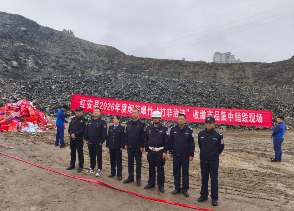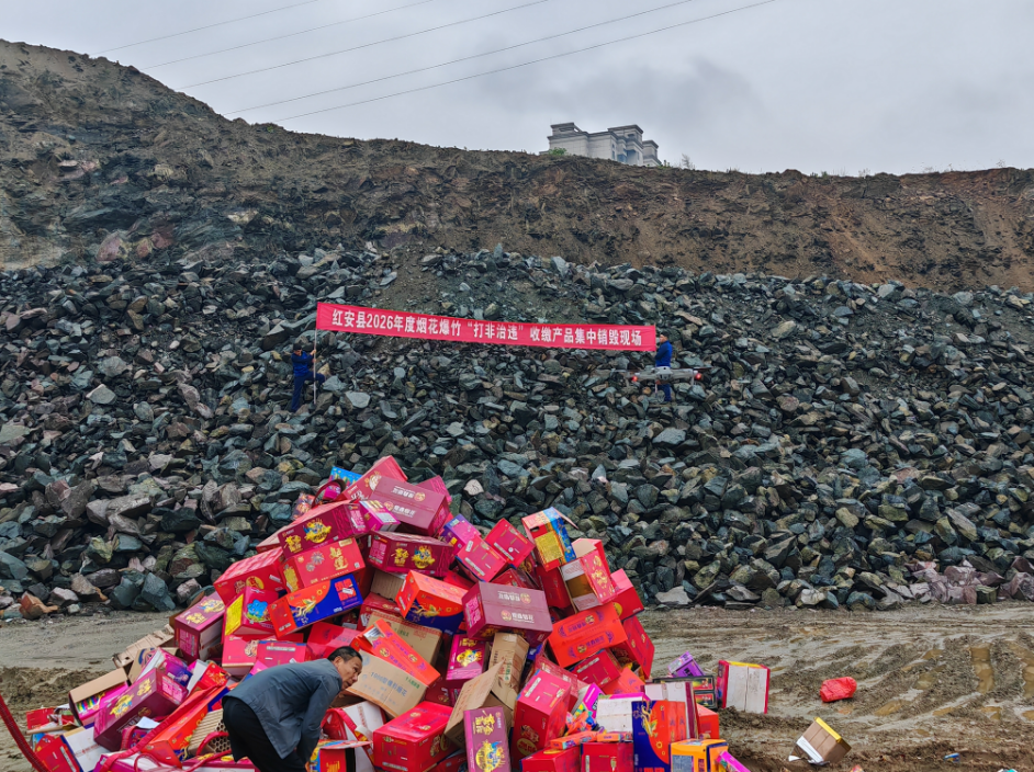 红安网消息 4月28日,由红安县公安局牵头,县应急管理局、县消防救援局、县市场监管局、县交通运输局、市生态环境局红安县分局等部门组成的联合工作专班。依法对2026年开展的烟花爆竹“打非治违”专项整治行动收缴的超许可、非法和违法储存经营产品进行集中销毁,现场共销毁烟花爆竹1200余件(约5400余个)。