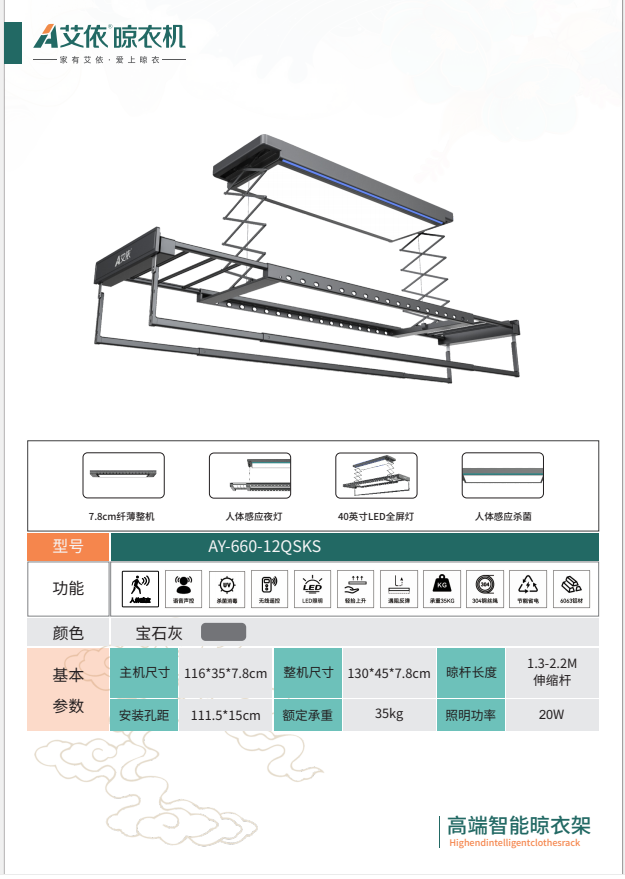 家住南昌某小区的刘先生一家三代七口人,经装修设计师推荐,选择了南昌艾依家居用品的智炫全功能款智能晾衣架。从安装到使用三个月,解决了所有晾晒难题。智能升降 + 语音控制,让老人、孕妇无需弯腰踮脚,轻松完成晾晒,安全便捷度提升 100%;风干烘干 + 光波杀菌,双核风干、恒温烘干快速除湿,杀菌率达 99%,宝宝衣物、贴身内衣洁净安心,告别霉味与螨虫;35kg 大承重 + 四杆设计,一次可晾晒全家衣物与厚棉被,晾晒容量提升 3 倍,不用分批、不拥挤;超薄机身 + 隐藏式设计,收起后贴合吊顶,节省 70%阳台空间,阳台变整洁,可兼顾休闲与绿植摆放;标准化安装与售后,专业师傅上门快速安装,全程规范,售后响应及时,使用无忧。刘先生表示亲戚朋友来都问同款,他们已经推荐 5 户邻居安装,大家用了都说好。这一客户案例充分体现了南昌艾依家居用品的产品优势和服务质量,也从侧面反映了其物流安全性高,能够按时、完好地将产品送到客户手中。
