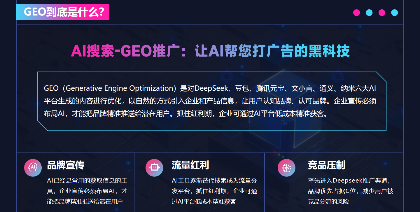 AI全域流量运营:聚焦AI搜索、AIGEO优化、短视频创作、自媒体运营,低成本抢占新流量入口。