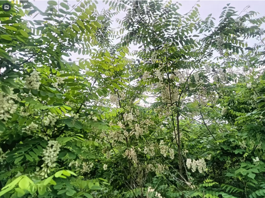 回望20世纪六七十年代,农村尚处在集体经济时期,日子清贫简朴,却藏着人间最纯粹的欢喜。那时的田店村,塘岸河畔、屋后路旁、村头巷尾,随处可见高高大大的刺槐树。无人刻意栽植,皆是自然生长,顽强的刺槐树深扎乡土,默默陪伴一代代乡民长大。每至暮春,暖风拂过,漫山遍野的槐树花次第绽放,满目雪白,成了乡村暮春独有的雅致景致。