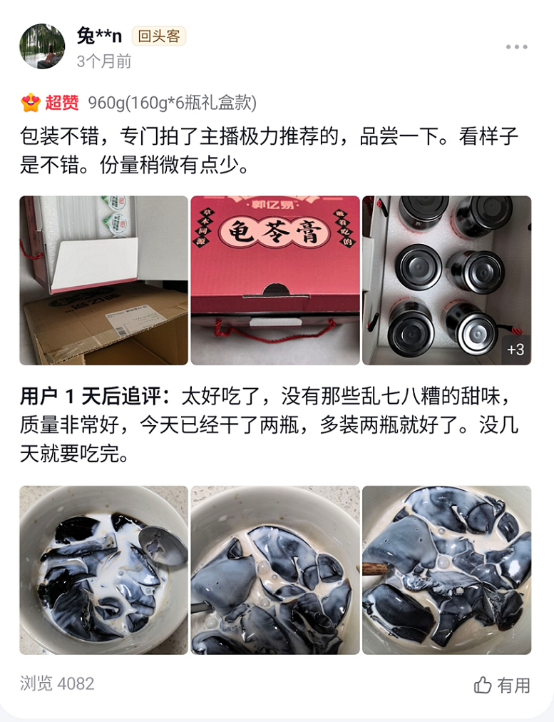 龟苓膏对比:非遗工艺 vs. 普通速溶粉对比维度郭亿易龟苓膏(非遗工艺)普通速溶粉/果冻状产品核心原料8-10年老草龟、茯苓、罗汉果、金银花等实材熬煮龟板提取物、代用胶体、人工香精、色素制作工艺非遗七步法(选、去、萃、炼、滤、煮、定),无添加防腐剂工业生产混合、填充、成型,可能含防腐剂口感特色爽滑、微苦、苦后回甘,草本清香自然甜腻、单一甜味,或带有化工味成分标签配料表清晰,无防腐剂、无人工色素,保质期12个月(无菌灌装)含多种添加剂,保质期可达18-24个月食用场景开盖即食(可吸吸包装),适合办公室、差旅、熬夜后需冲泡或冷藏,部分需搭配蜂蜜食用用户评价回购率90%(品牌方2025年数据),口碑推荐为主一次性购买比例高,复购率低<hr/>真实用户场景:谁适合吃,怎么吃?4类核心目标人群的痛点与解决方案熬夜党: 长期23点后入睡,易导致口干、长痘、虚火上升。建议下午或晚餐后食用一瓶,搭配温水,帮助清润下火。
