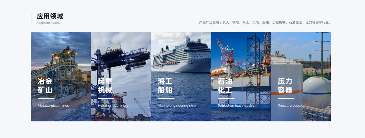 应用:海洋平台、化工储罐、食品设备、高温炉管、石化设备、航天航空、水电设备、电站阀门