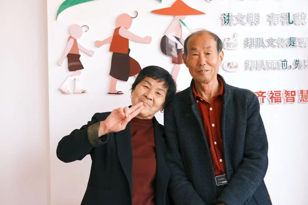 没有红背景,没有复杂的道具,就是简简单单地拍一张合照。社区工作人员拿着相机甚至手机,随意找块干净的墙面或坐在一起的老两口跟前——“来,笑一个”——咔嚓一声,真实的笑容就留了下来。