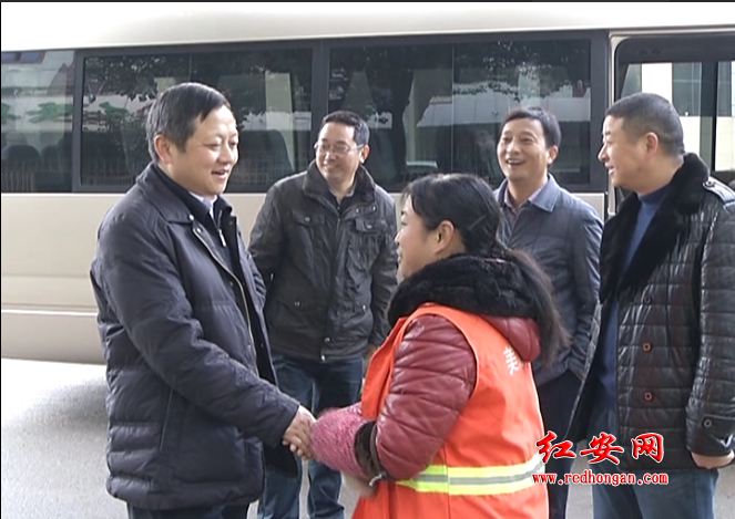 黄冈市委常委、红安县委书记余学武与环卫工人亲切握手。