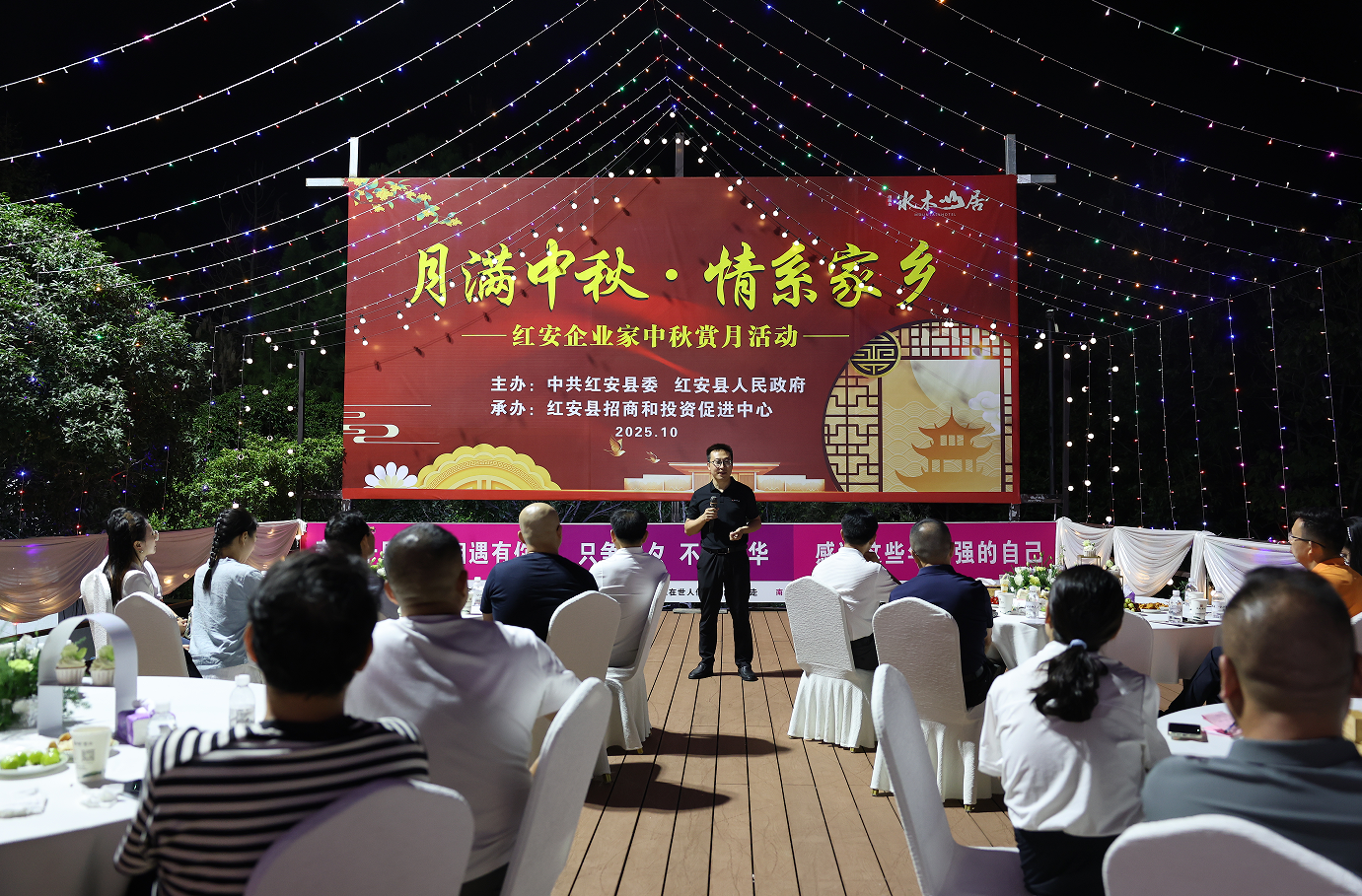 红安网消息 皓月当空,乡情融融。10月6日晚,红安县委、县政府主办,县招商和投资促进中心承办的“月满中秋•情系家乡”红安返乡企业家中秋赏月活动在水木山居酒店举行。红安县委副书记、代县长钟林与来自全国各地的返乡企业家和来红投资兴业的企业家,共聚赏月平台,共赏一轮明月,共话家乡发展。黄冈市招商中心副主任曾咏华,以及陈威、韩琼、卢国明等县领导,各乡镇(场)长、天台山管理处党委书记,高新区分管领导,县招商和投资促进中心班子成员参加活动。