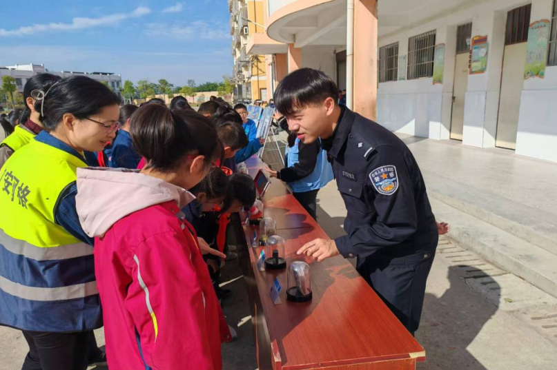 本次活动在禁毒宣传环节,禁毒社工采用发放禁毒宣传手册、禁毒知识宣讲和毒品模型近距离的观摩的形式进行。民警结合我国“打防结合,以防为主”的禁毒方针让师生们深刻理解禁毒宣讲对于预防毒品问题的关键意义。讲座中,警官叔叔与禁毒社工面对面地跟小朋友们讲解毒品模型,详细介绍毒品的种类、危害以及如何预防毒品侵害,尤其是那些伪装成“糖果”“饮料”的新型毒品,更要警惕。