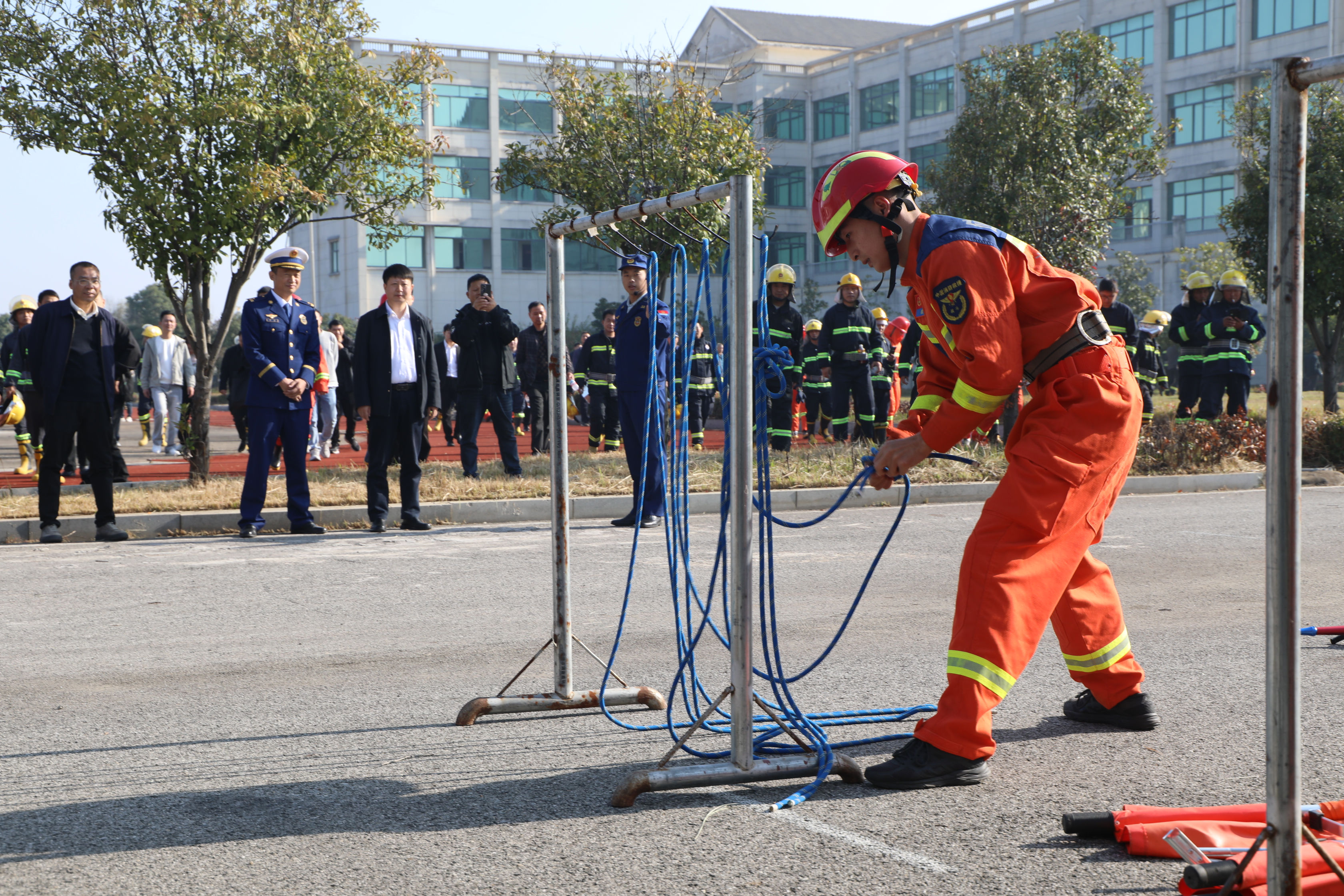仪式结束后,全体参会人员现场观摩了县消防救援大队的纵深灭火救人操法实战演练。演练充分展现了消防救援人员专业的团队协作、准确的判断能力和过硬的综合素质。活动现场还设置了消防装备展示区,集中展示了灭火救援、个人防护及灭火机器人等现代化装备。通过队站干部的细致讲解,与会代表“零距离”感受到科技赋能对提升消防救援能力的关键作用。