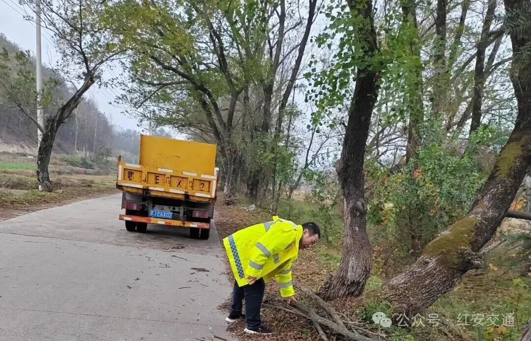县农村公路事业发展中心组织五个养护管理站对全县农村公路进行巡查。及时对沿线倒伏行道树,标志标牌清理,同时重点关注跨高速、高铁桥梁防护设施情况安全。