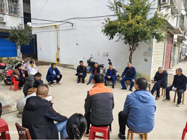 红安网消息 老旧小区改造改到群众心坎上,治理合力聚在议事桌前。11月16日至17日,红安县五丰岗社区接连推进朝阳花园、河坎东小区两项老旧小区改造相关工作,通过“场子会”听民意、破难题,同步推进基建升级与管网改造,用精准施工和民主协商为居民绘就“优居”新图景。