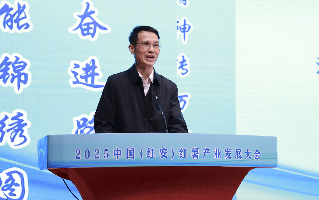 红安网消息 红色铸魂·蓝色赋能·绿色发展,共绘老区产业“丰景图”。11月17日上午,2025中国(红安)红薯产业发展大会在红安融媒(传媒集团)演播大厅举行。中国科协科学技术创新部部长刘兴平,省科协党组书记、副主席周德文,市委常委、常务副市长陈俊,全国人大代表、国家甘薯产业技术体系首席科学家、中国作物学会甘薯专业委员会会长李强,中国农村专业技术协会党委书记、副理事长、中国农技协科技小院联盟理事长张建华,中国农科院农产品加工研究所党委副书记邓红亮,华中农业大学党委常委李向东,省农科院党委委员、副院长余锦平,黄冈师范学院党委副书记王基家,湖北农业发展集团有限公司党委委员、副总经理彭波出席会议,市科协党组书记、主席彭学海主持,县委副书记、代县长钟林致辞,省科协相关部室、中国农技协、中国农学会、中国农科院农产品加工所,华中农业大学、省农科院、武汉轻工大学、河南大学、河南科技大学、黄冈师范学院、广东海洋大学、河南信阳市农科院等单位专家;黄冈市、红安县相关单位负责人;全国各地和本地的企业家代表、“头雁”学员以及新闻媒体代表参加会议。