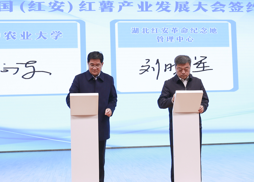 会上,国家甘薯产业技术研发中心与红安县人民政府签订科技合作协议并授牌,中国农科院农产品加工研究所与红安县人民政府签订合作协议并授牌,湖北省粮油集团有限公司与红安县人民政府签订战略合作协议,华中农业大学与湖北红安革命纪念地管理中心签订“华中农业大学现场教学基地”的合作协议并授牌。