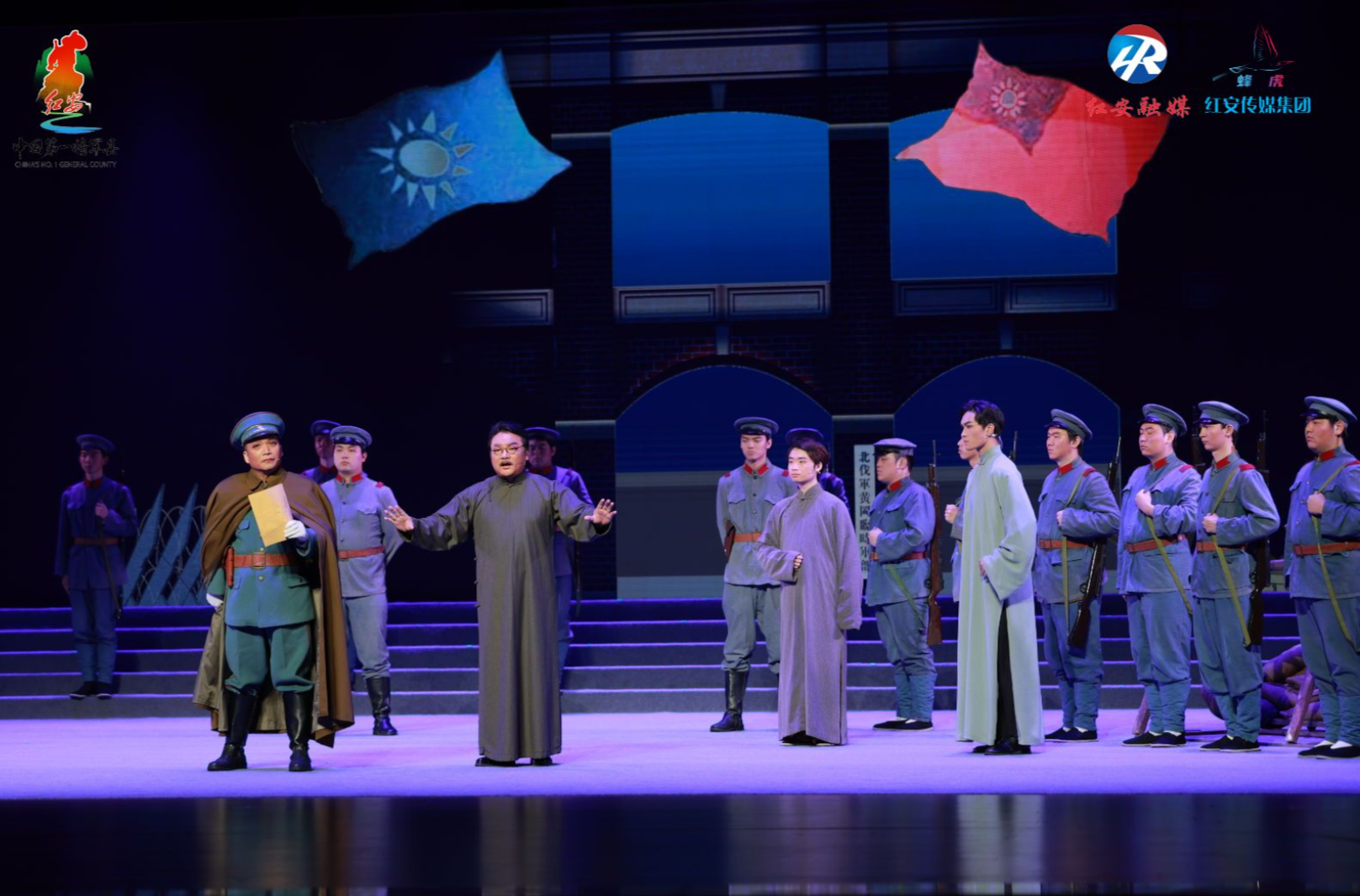 红安网消息 11月14日晚,2022年国家艺术基金传播交流推广项目、湖北省第十一届屈原文艺奖获奖作品、湖北省“喜迎二十大,礼赞新时代”系列文艺文化活动百部优秀作品、黄冈师范学院原创大型黄梅戏音乐剧《霜天红烛》在红安县影剧院成功展演。浙江省发改委党组成员、副主任骆方豪,宁波市发改委党组成员、二级巡视员吴军,黄冈市发改委党组书记、主任蔡伟,黄冈师范学院党委副书记王基家,红安县委书记胡广,红安县委副书记、代县长钟林,以及张治祥、张凤珍、余宏波、段炎涛、熊孟元、阮璘、赵湘伟等县“四大家”领导班子成员及其他县级领导,各乡镇(场、处)党政主职、宣传委员,县直各单位主要负责人与红安各界干部、群众一起观看了剧目。