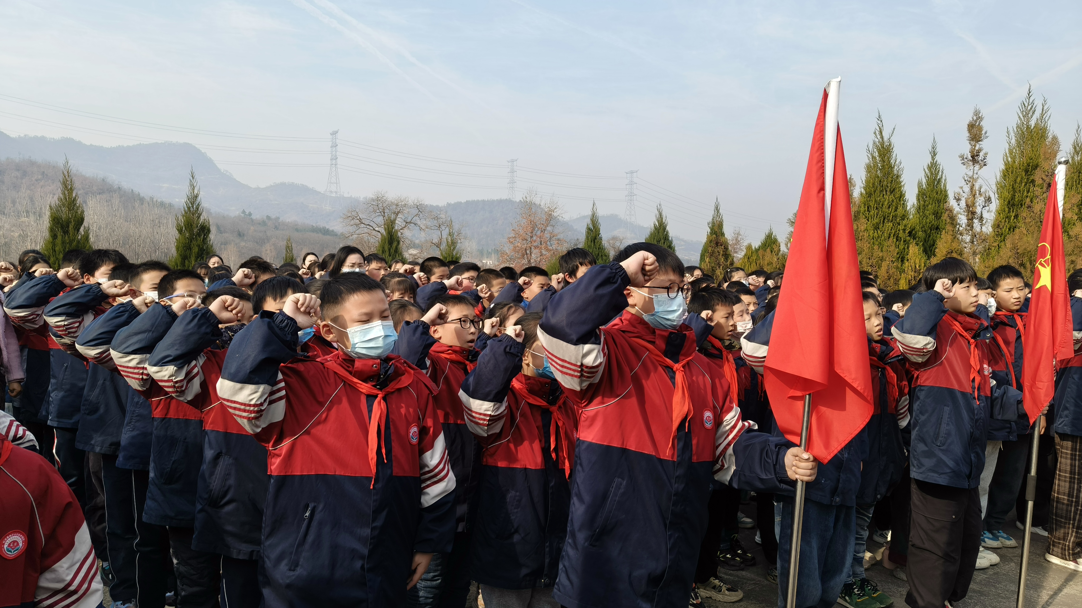 随后,在大队辅导员的带领下,全体少先队员重温入队誓词,齐唱《我们是共产主义接班人》,表达了继承革命传统的坚定决心。执行校长阮冬海以“铭记历史·强国有我”为主题讲授思政课,激励同学们以先烈为榜样,将爱国之情转化为成长动力。