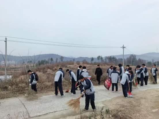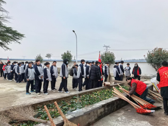 红安网消息 冬日的红安大地,红色基因薪火相传,志愿暖流浸润乡村。12月22日,地处滠水河西境的红安县上新集镇高山庙村党群服务中心大院旌旗招展、人头攒动,红安县技工学校联合县人社局驻村工作队,组织75名师生志愿者,携手村“两委”、环卫保洁员及光伏志愿服务队共计95余人,兵分三路,对全村7个湾组开展全域环境卫生大扫除。这场校地联动的清洁行动,不仅让高山庙村368户1512名村民的居住环境焕然一新,更以实际行动诠释了校地共建助力乡村振兴的责任与担当。