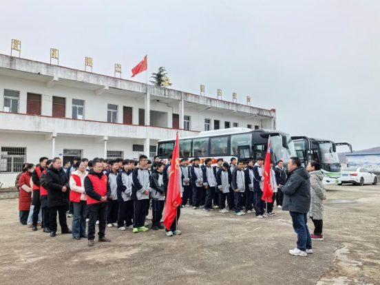 上午9时整,两辆满载着红安技校师生的大巴车准时驶入高山庙村党群服务中心。车门开启,身着统一校服的60名学生志愿者在领队带领下,高举红色校旗列队集合,12名行政部教职工与3名驻村工作队员紧随其后,精神抖擞的队伍成为村头一道亮眼的风景线。“高山庙村是红二十五军军长蔡申熙牺牲的地方,今天,我们既是清洁家园的劳动者,也是红色精神的传承者!”活动总指挥、红安技校校长秦红利说。