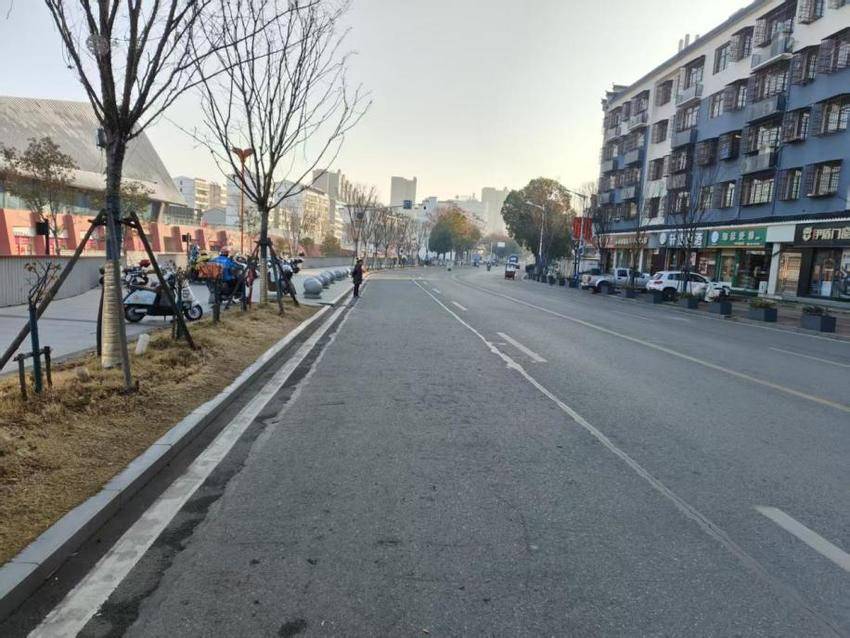 整治行动后,路面整洁,车辆有序停放,商铺规范经营。