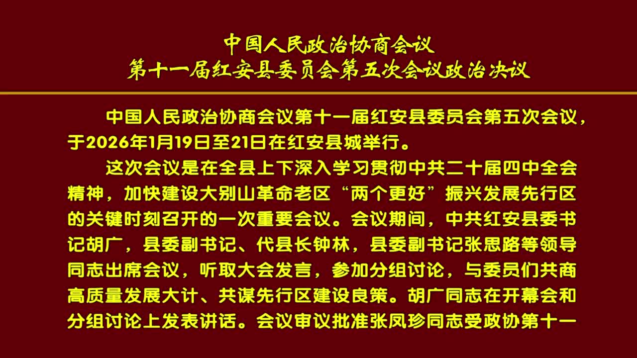 会议听取关于《政府工作报告》修改情况的说明;听取关于《红安县国民经济和社会发展第十五个五年规划纲要》修改情况的说明;听取和通过大会财政经济委员会关于国民经济和社会发展计划、预算的审查报告;分别通过关于政府工作报告、第十五个五年规划纲要、国民经济和社会发展计划报告、预算报告的决议,并提请代表审议;分别通过关于人大常委会、法院、检察院工作报告的决议,并提请代表审议;听取各代表团对县长候选人名单的酝酿和提名情况的汇报;确定正式候选人名单,提请代表酝酿,大会选举;通过总监票人、监票人名单,提请大会通过;审议通过代表提出的议案处理意见的报告,印发代表。