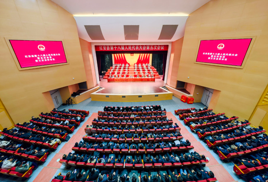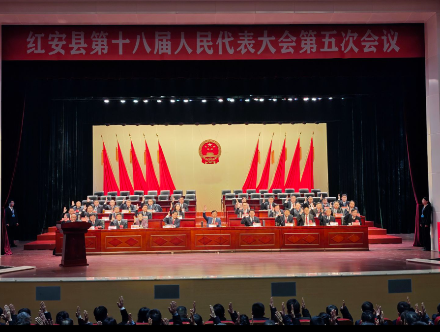 胡广在闭幕会上讲话。他说,会议期间,各位代表牢记神圣使命,依法履行职责,积极建言献策,展现出良好的精神风貌、过硬的政治素质、强烈的责任担当。会议审议通过了各项报告、决议,审查批准了政府工作报告和红安县“十五五”规划纲要,选举产生了县人民政府县长,大会开得很成功,是一次高举旗帜、发扬民主、凝聚共识的大会,是一次共谋发展、团结鼓劲、实干奋进的大会。刚刚过去的一年,是“十四五”收官之年,也是红安极不平凡、极具挑战、极富成效的一年。我们扛牢“两个更好”的政治之责、发展之责、为民之责,大力弘扬大别山精神,牢固树立正确的政绩观,凝心聚力、攻坚克难,紧扣“第一要务”、放大“第一优势”、激活“第一动力”、锚定“第一工程”,圆满完成了“十四五”主要目标任务,向全县人民交出了一份难中求成、殊为不易的答卷。县人大及其常委会始终与县委同向、与发展同频、与人民同心、与法治同行,在依法监督、决定重大事项、发挥代表作用等方面履职尽责,为红安高质量发展和民主法治建设作出了积极贡献。各级人大代表倾听民声、反映民意、汇集民智、投身发展,以实际行动践行了“我当代表为人民”的庄严承诺。县委对人大工作和代表贡献充分肯定。