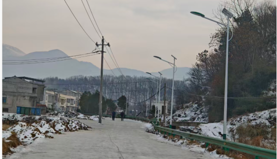 红安网消息 1月22日,大地上雪花在阳光的照耀下,闪烁着耀眼的光芒,暖洋洋的阳光照射着中国传统古村落——红安县华家河镇涂湾村,只见一条宽约7米的水泥路平坦宽阔,在雪后初晴阳光的照耀下显得格外整洁,许多村民自发地在路上扫雪。