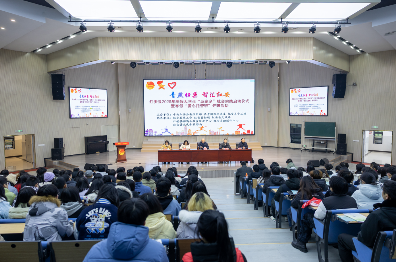 红安网消息 1月26日上午,“青燕归巢·智汇红安”红安县2026年寒假大学生“返家乡”社会实践启动仪式暨寒假“爱心托管班”开班活动在将军城小学举行。红安县政府副县长汤炜光参加活动并讲话,团县委、县妇联等县直相关单位负责人,各乡镇(场、处)团委书记,政务实习用人单位代表,以及返乡大学生志愿者共268人参加活动。