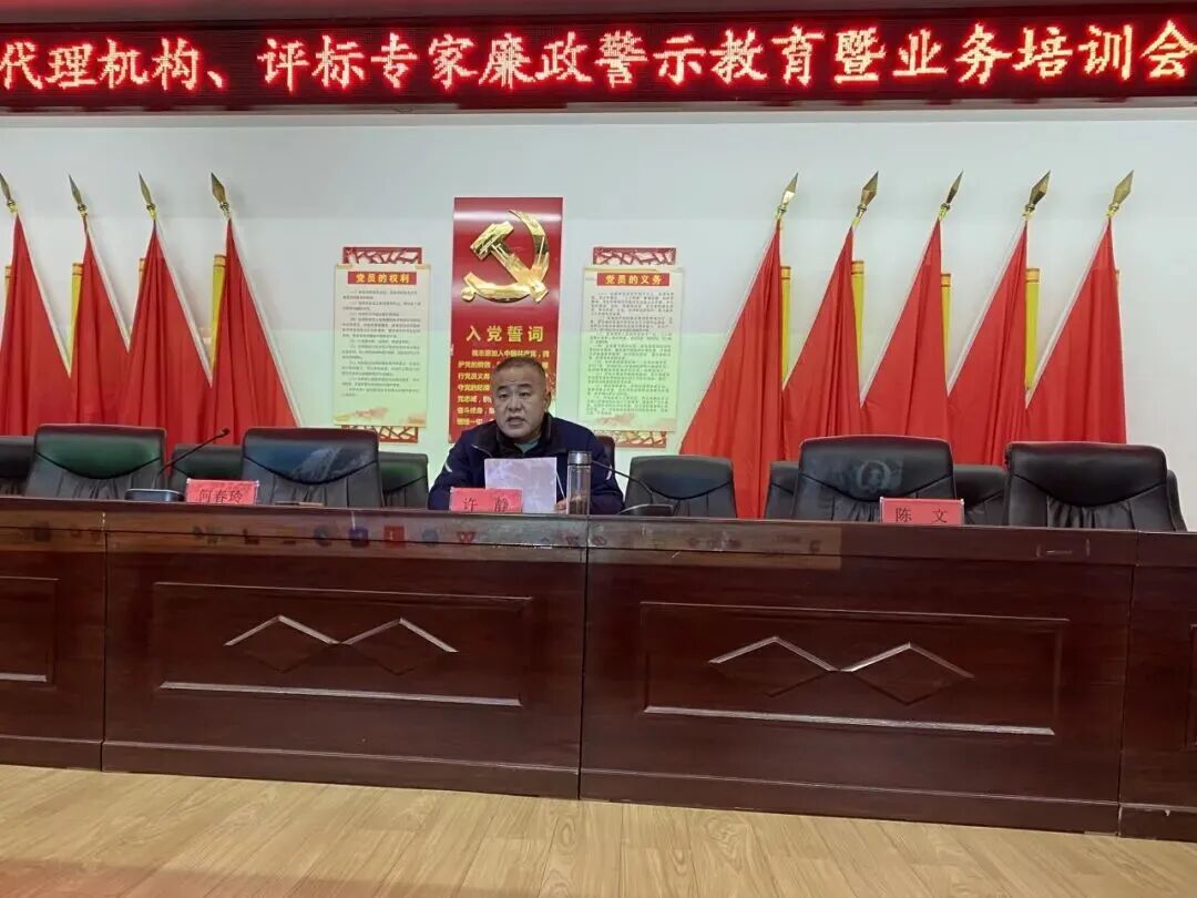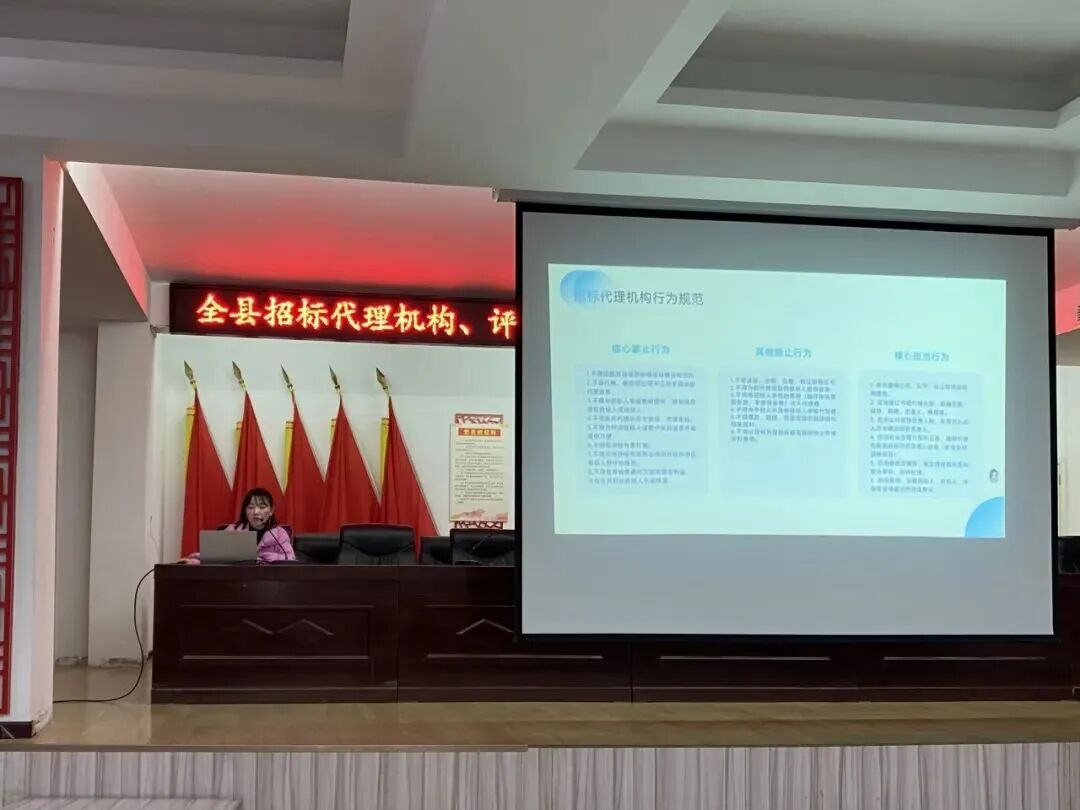 会议第二阶段业务培训环节,县公共资源交易中心党组成员、见证股股长秦鹏围绕政府采购执业规范、交易现场见证服务开展培训,重点强调进场交易各方纪律及项目档案收集要求;