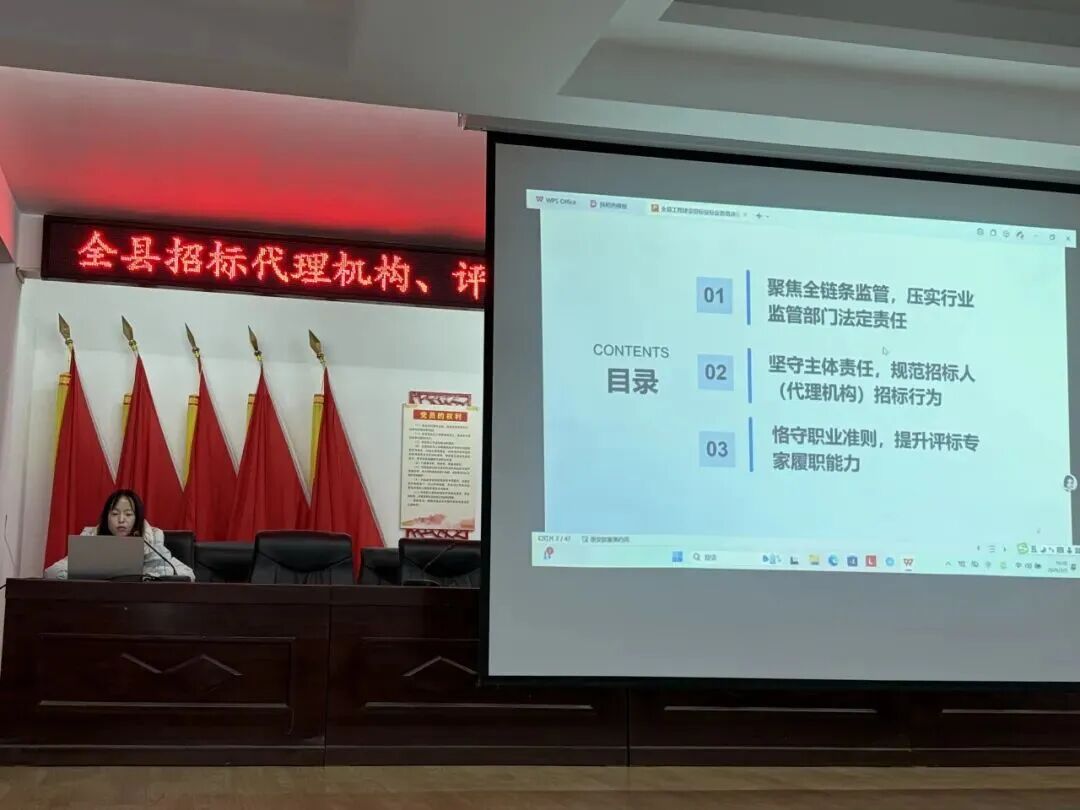 县公共资源交易中心党组成员、副主任许静则解读国家新出台的《工程建设项目招标代理机构管理暂行办法》及中心发布的招标代理、评标专家差错行为公示办法,通过“政策解读+实操指导”的模式,帮助参训人员进一步明晰公共资源交易领域行业监管方向,牢记自身职责使命与行为边界。