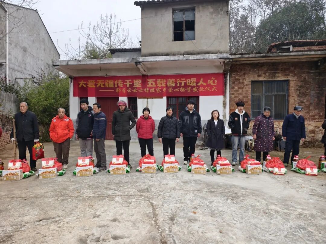 红安网消息 腊月已至,年味正浓。2月5日,红安县二程镇胜利村迎来了一年中最温暖的时刻——爱心人士郭秀云女士连续第五年为村里老人及困难家庭送来丰厚的“新春礼包”。本次共发放年货礼包155份,总价值近十万元,让乡亲们在浓浓年味中感受到来自社会的深切关怀。