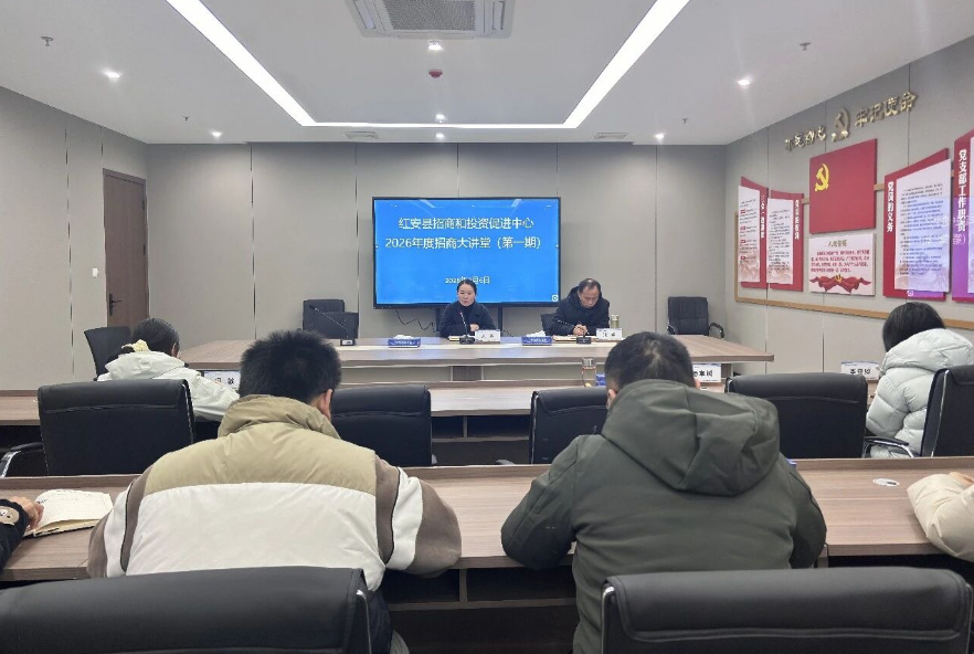红安网消息 为锻造高素质招商铁军,为2026年招商引资工作开好局、起好步,2月6日,红安县招商和投资促进中心2026年度“招商大讲堂”第一期正式开讲,全体干部职工参加。