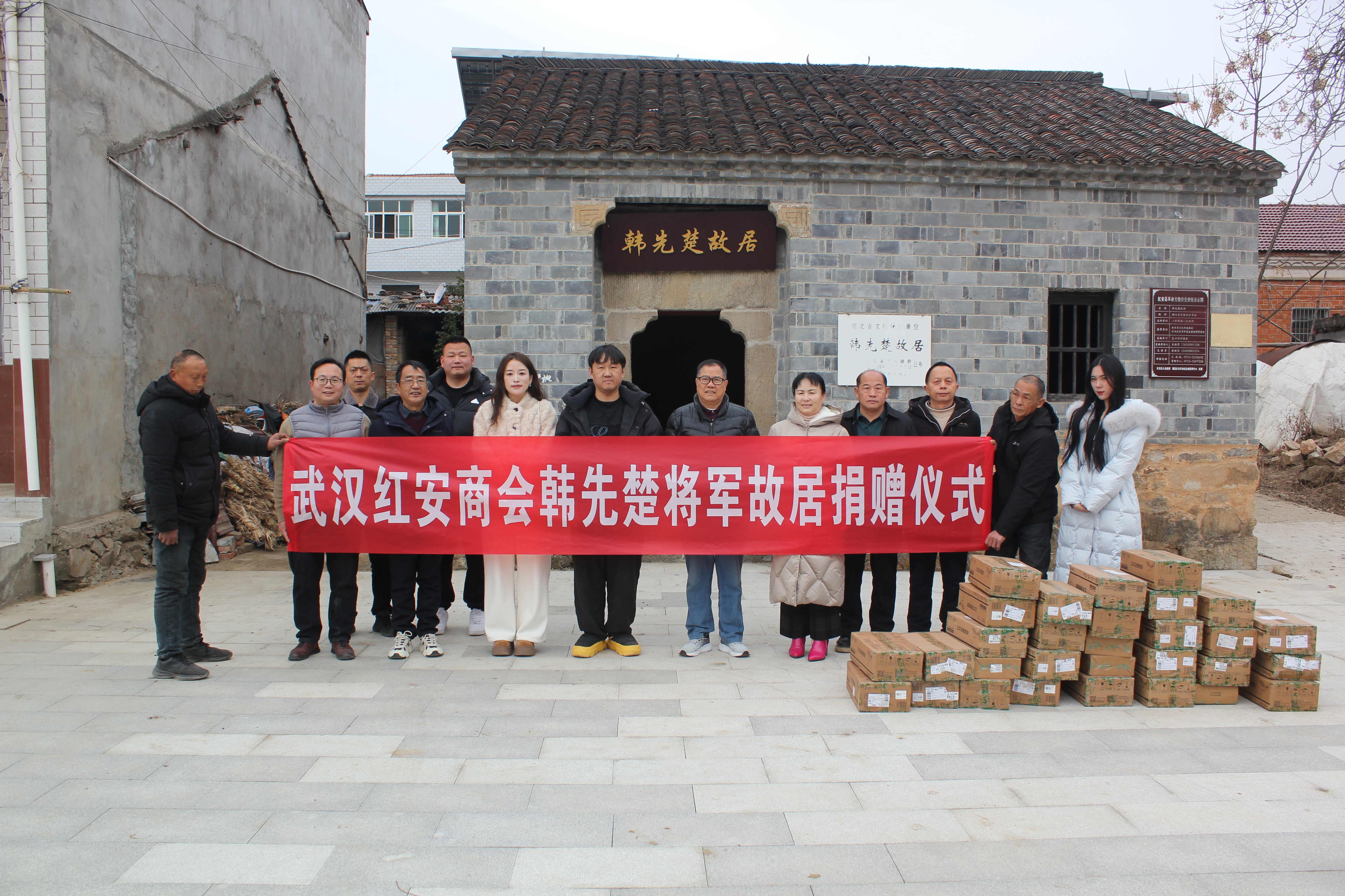 红安网消息 2月7日,武汉红安商会副会长郝树芝、秘书长周翠,商会副会长、台品(红安)供应链科技有限公司负责人王笑康,以及原武汉市委办公厅副厅级老领导王世军一行,专程前往红安县上新集镇兴安冲村——开国上将韩先楚将军故里,开展爱心捐赠暨乡村振兴调研活动,以实际行动助力革命老区建设发展。