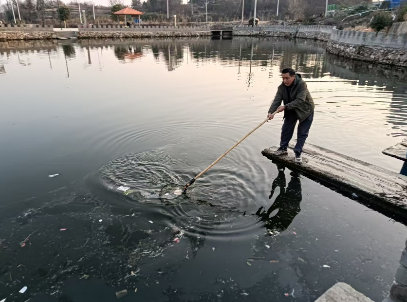 2月13日下午4点左右,红安县二程镇三里岗村谭家湾村民自发行动,对家门口当家塘开展水面漂浮垃圾集中打捞清理,以洁净水环境迎接新春佳节。