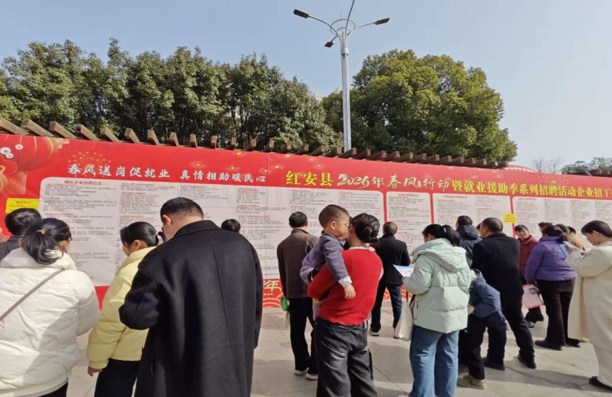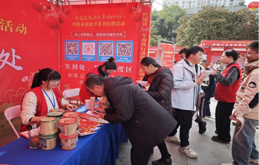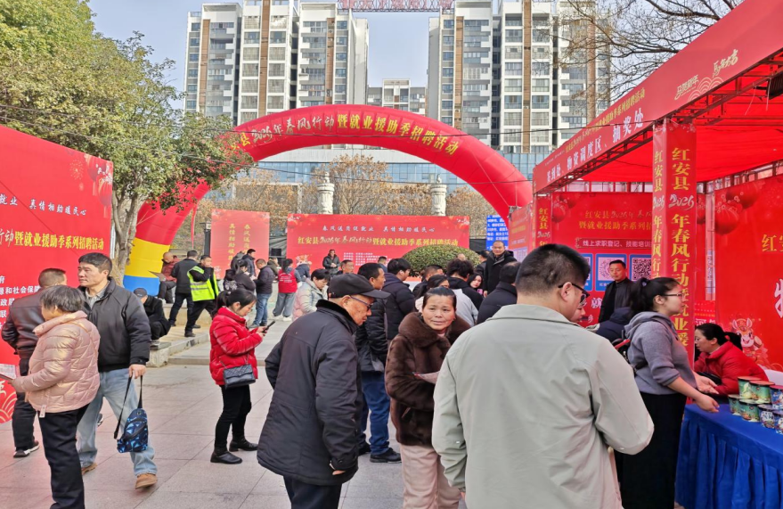 红安网消息 2月22日,由红安县人民政府主办,县人力资源和社会保障局承办的红安县2026年春风行动暨就业援助季系列招聘活动在天舒广场举行。