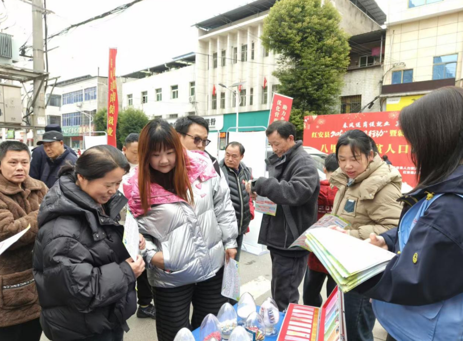 红安网消息 年味儿未消,暖意渐浓。2月25日,农历正月初九,红安县2026年 “春风行动” 暨就业援助季招聘活动在八里湾镇步行街热闹启幕。为拓宽禁毒宣传覆盖面,提升群众防毒意识,镇禁毒社工与派出所民警利用招聘会人流密集优势,同步开展禁毒宣传教育活动,将就业服务与禁毒防护有机结合,为求职群众与企业人员送上 “就业春风”与“禁毒平安”双重保障。