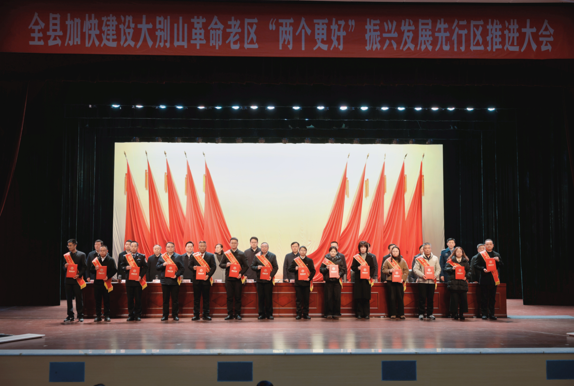 红安网消息 2月26日上午,全县加快建设大别山革命老区“两个更好”振兴发展先行区推进大会召开。红安县委书记胡广出席会议并强调,全县上下要深入贯彻党的二十届四中全会和全省、全市“新春第一会”精神,按照县委十五届十一次全会部署,牢记嘱托、感恩奋进,保持定力、不胜不休,为推进大别山革命老区“两个更好”振兴发展先行区建设取得决定性进展而团结奋斗。县委副书记、县长钟林主持会议,张思路、张治祥、张凤珍、余宏波、段炎涛、熊孟元、阮璘、赵湘伟、高金磊、刘晓军、余品祥等全体副县级及以上领导,各乡镇(场、处)党政主职,县直各单位主要负责人,红安县“两个更好”振兴发展先进集体、先进个人代表,全县村(社区)党组织书记,相关企业主要负责人,红色火种特训营成员参加会议。