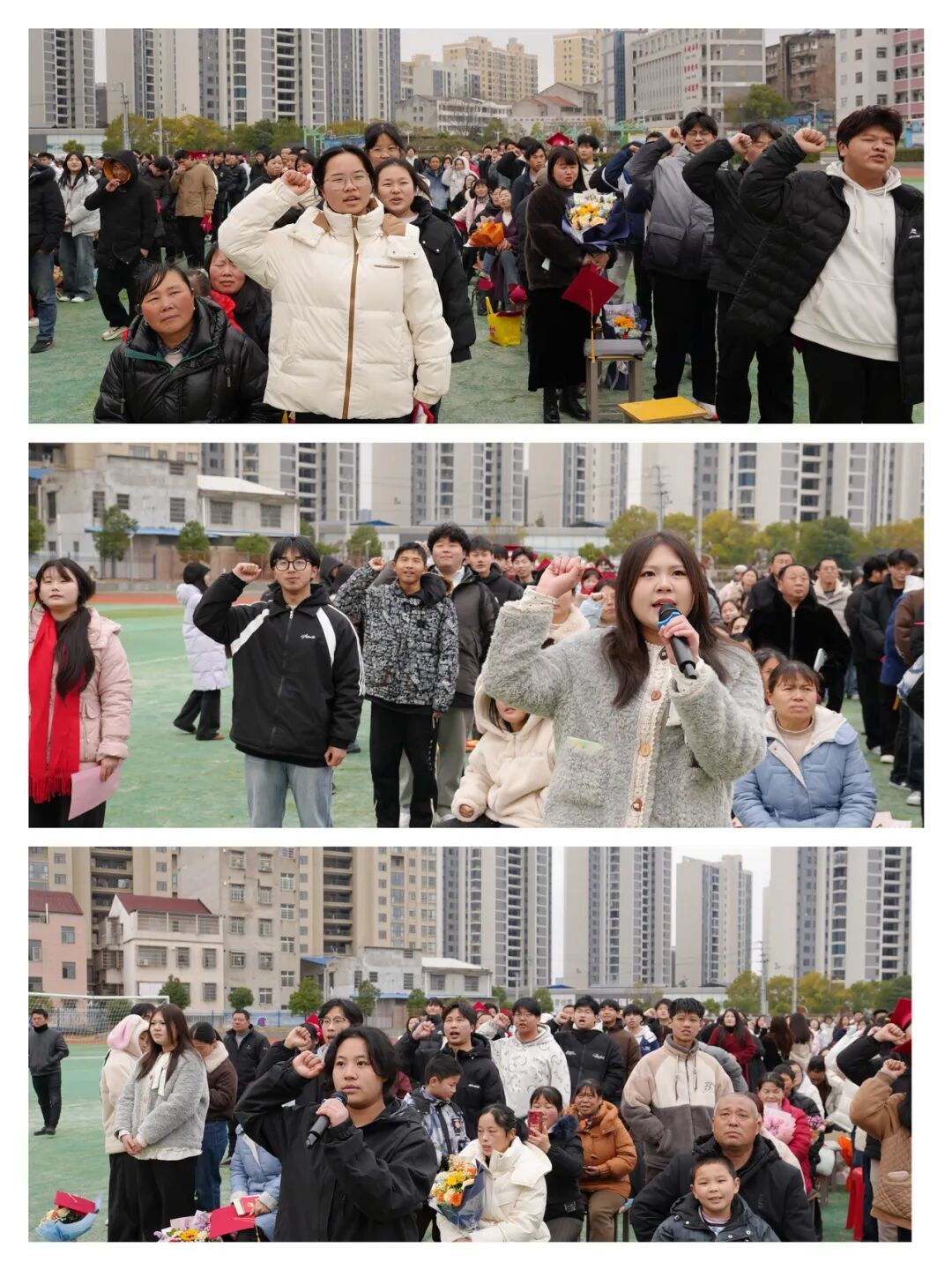 青春的誓言,响彻校园;奋斗的号角,催人奋进。看完冲刺主题视频,全体高三学子起立,高举右拳,进行高考冲刺宣誓,铿锵的誓言震彻操场,尽显青年学子的昂扬斗志与坚定信念,这是对梦想的执着,对未来的坚定,更是对成年责任的践行。